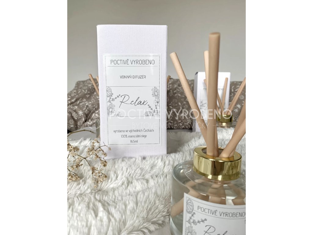 Aroma difuzér s tyčinkami s vůní inspirovanou relaxací.