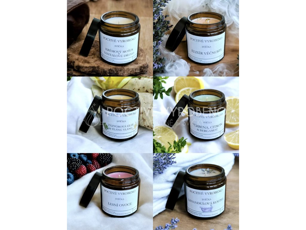 Nevíte kterou? Vemte všechny! Výhodné balení úplně nových svíček 5+1 ZDARMA. \nSvíčky- Lesní ovoce, Levandulová koupel, Zázvorová lilie a Ylang ylang, Verbena s citronem a bergamotem, Krémový mošus a santalové dřevo, Elixír věčnosti