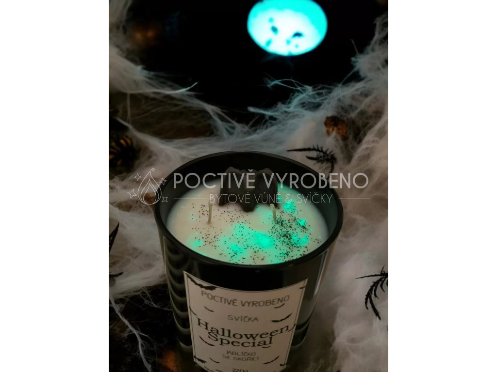 Halloweenská limitovaná edice svíček, která po nasvícení povrchu svíčky svítí ve tmě!