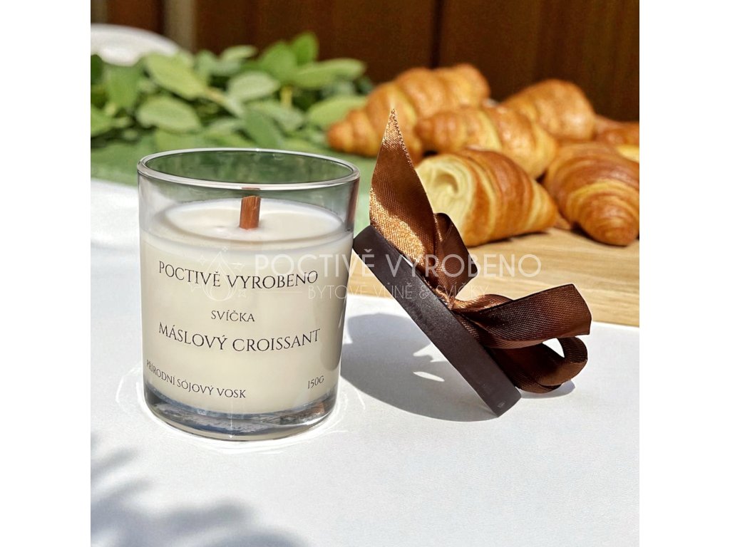 Právě tuto vůni jsme zachytili v naší limitované edici svíček s tóny máslového croissantu! S každým nádechem vás obklopí jemný tanec másla a čerstvě upečeného pečiva, který pohladí smysly a navodí pocit lahodného pokušení.