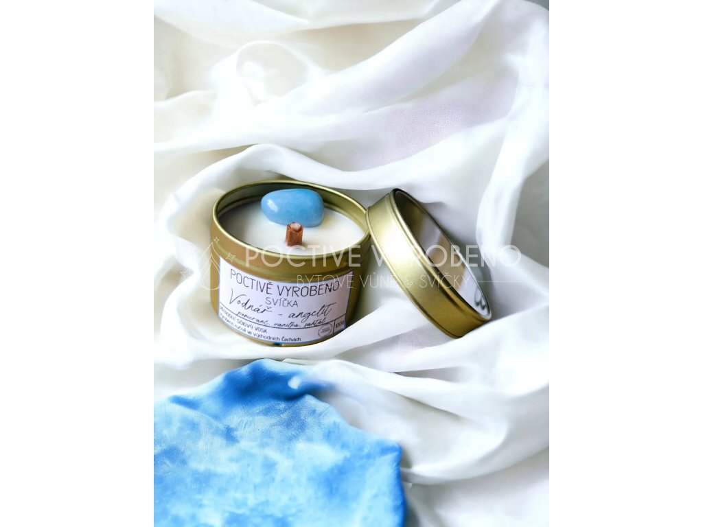 \nVodnář– vzdušné znamení plné zdravé čisté inteligence, které se obrací do lehké tvrdohlavosti. \nAngelit je tišící a uklidňující kámen, který navozuje hluboký pocit klidu a míru.